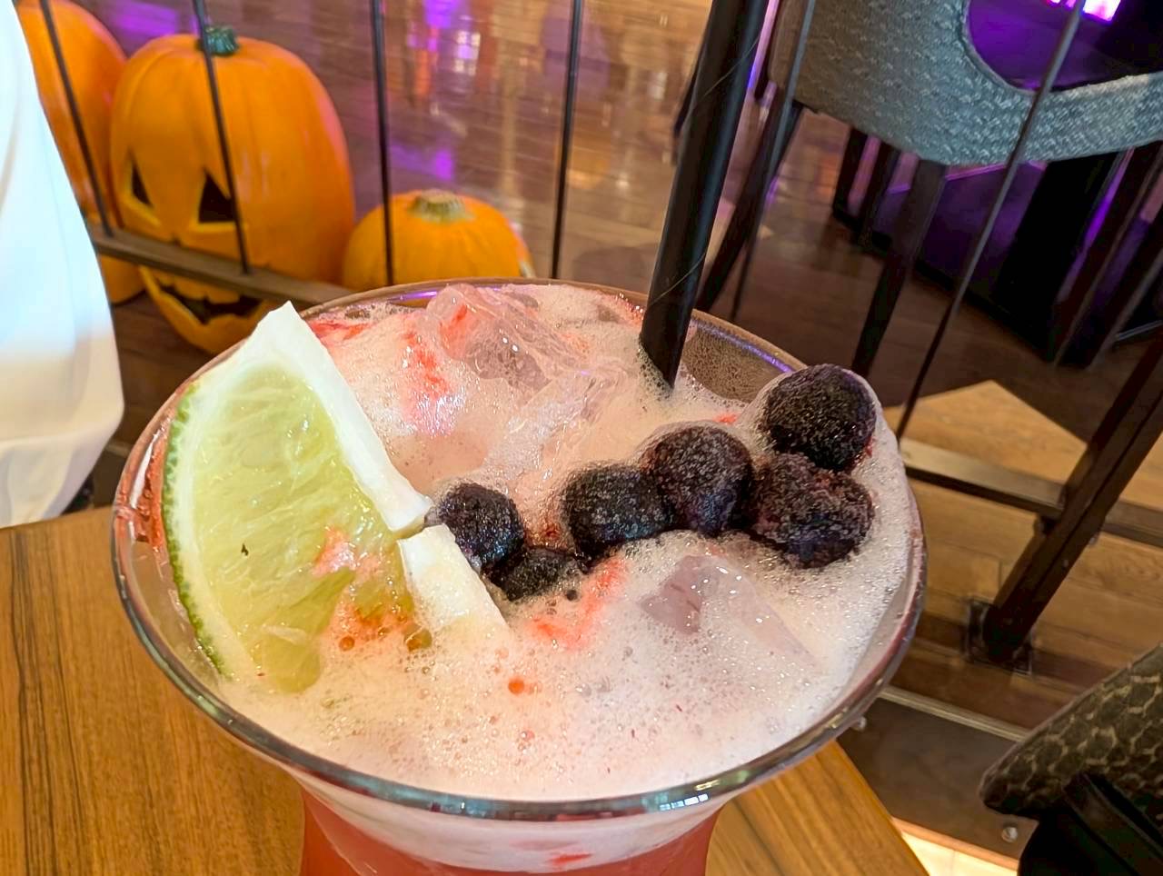 トップにはフレッシュブルーベリーの果肉がたっぷりと盛られ、見た目はまるで血のように赤く、ゾンビの名にふさわしいインパクトです。