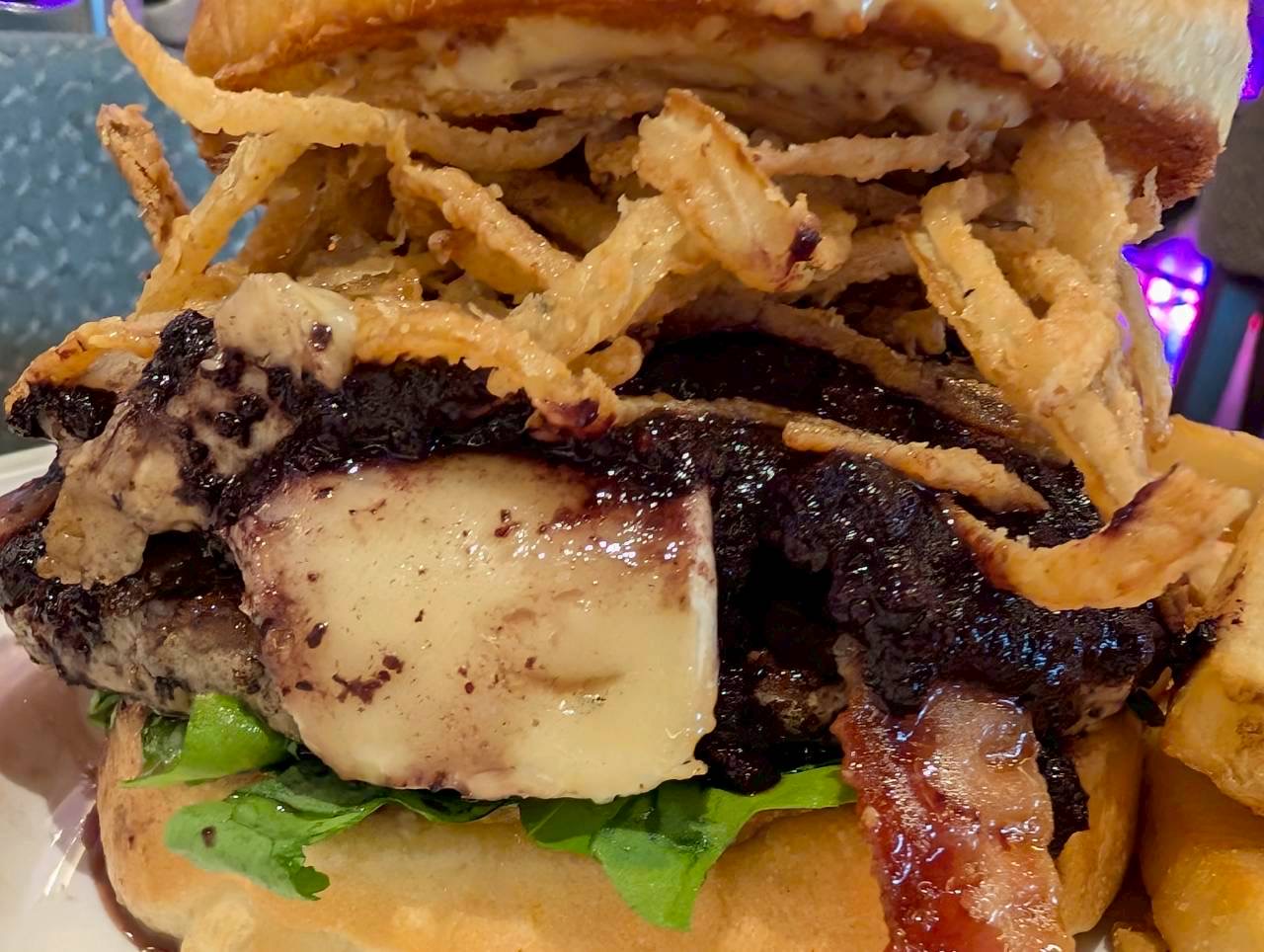 紫がかったブルーベリーソースが妖しく輝く「ブーベリーバーガー」は、まさにハロウィンの主役級です。