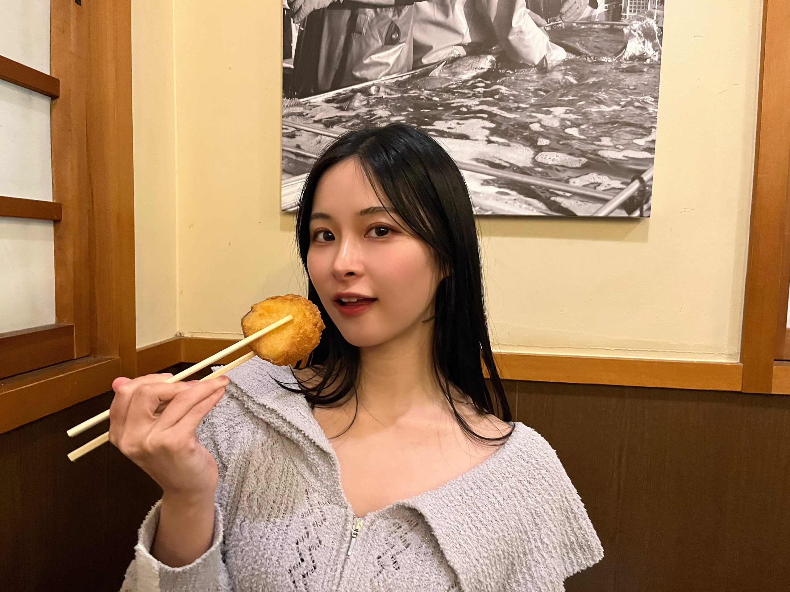 名物芋天は、外はカリッと揚げられ、中はほくほくとした甘みです。