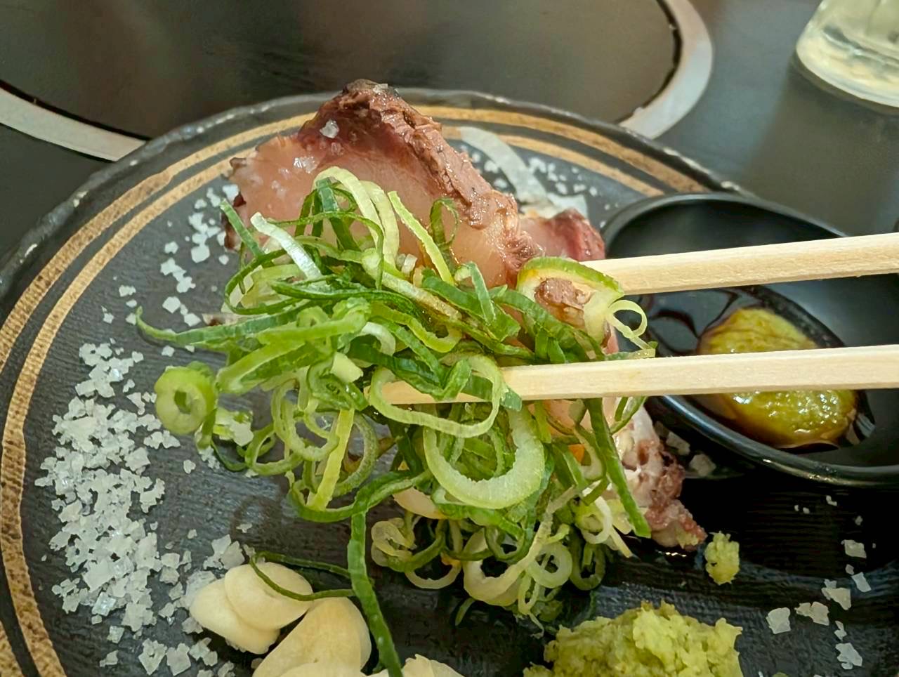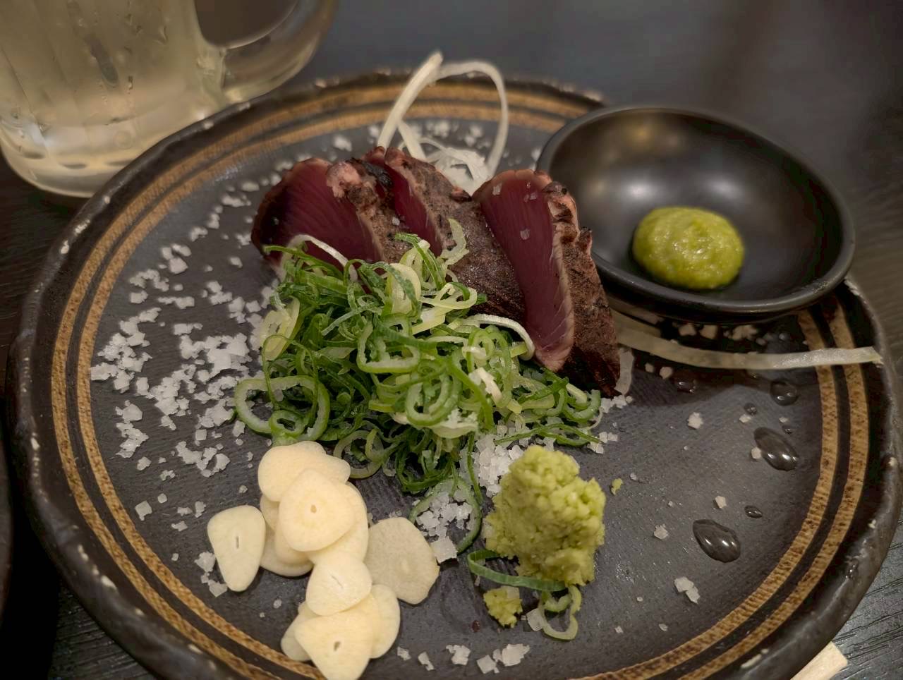 皮目の香りと赤身の食感が絶妙で、薬味との相性も抜群です。