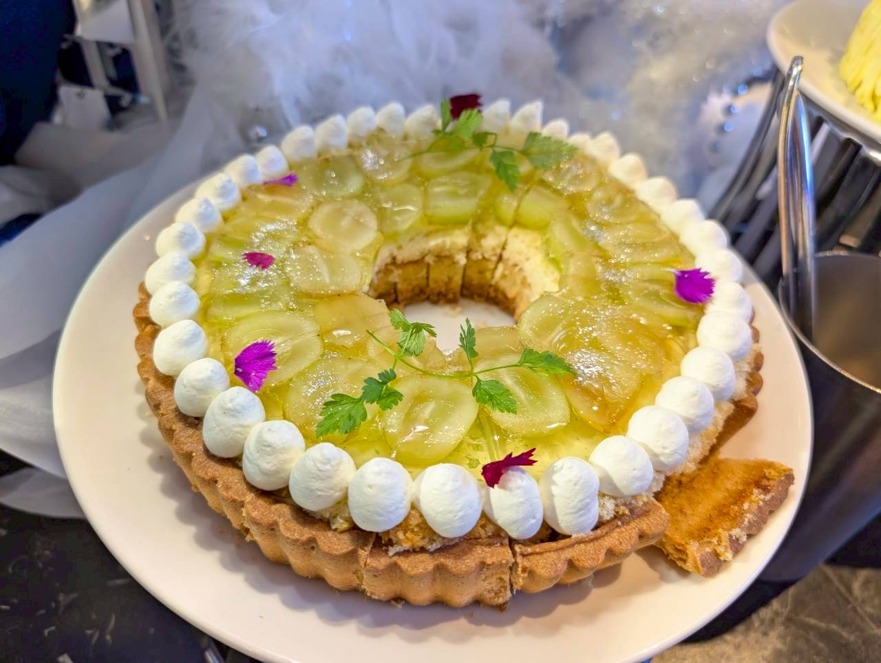 エディブルフラワーとマスカットで、なんだかクリスマスリースのようなかわいい見た目でした。