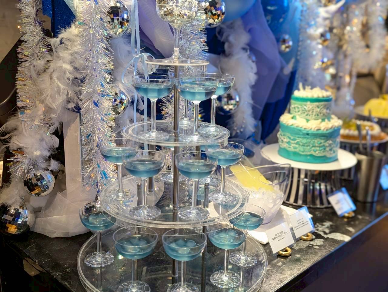 シャンパンタワーに並ぶこちらは、グラスに入ったバタフライピーゼリー。