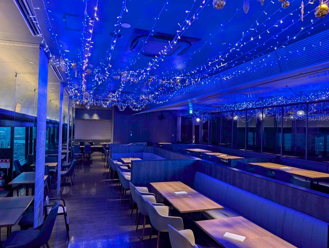 地上200メートルの高さで10,000球のイルミネーションを見ながらランチやディナーを楽しむことができる特別なビュッフェとなっています。
