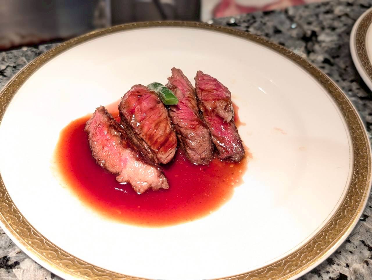 『アンガス牛ステーキ 赤ワインソース』は、濃厚で酸味が効いたソースで、やっぱりお肉には赤ワインですね♪