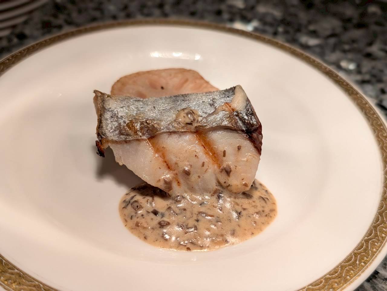 『サワラのグリル デュクセルソース』は、柔らかく脂が乗ったサワラのグリルで口の中でほろほろ崩れます。