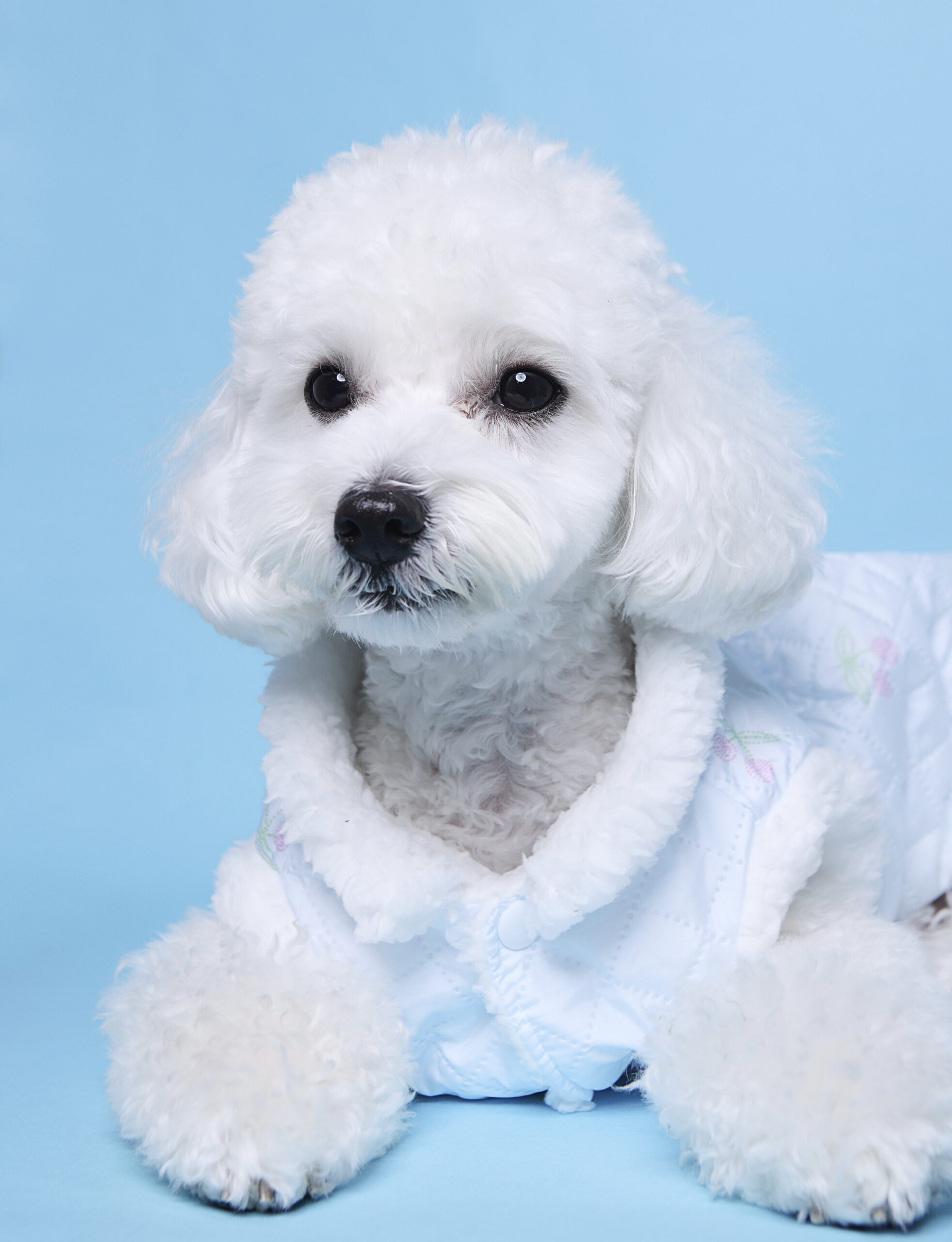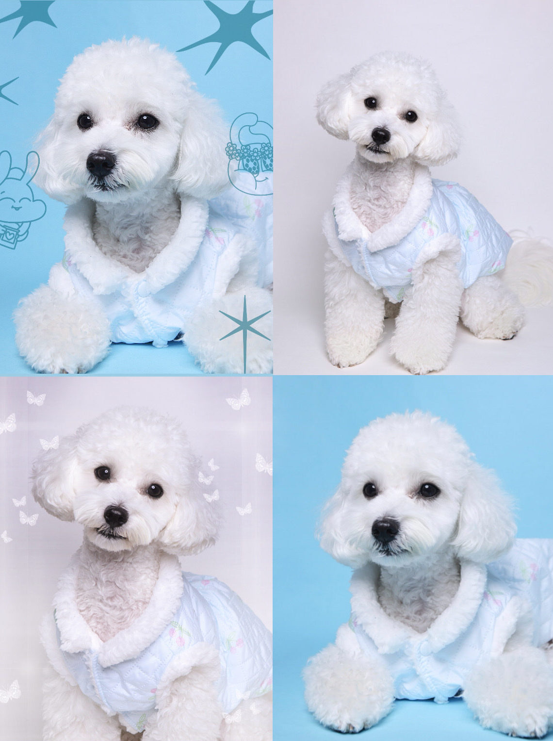 ブランくんがこの日のために着ていた洋服の雰囲気や毛色などをスタジオの方に見ていただき、「ブルー」と「ホワイト」の2パターンが似合いそうだと提案してもらいました!