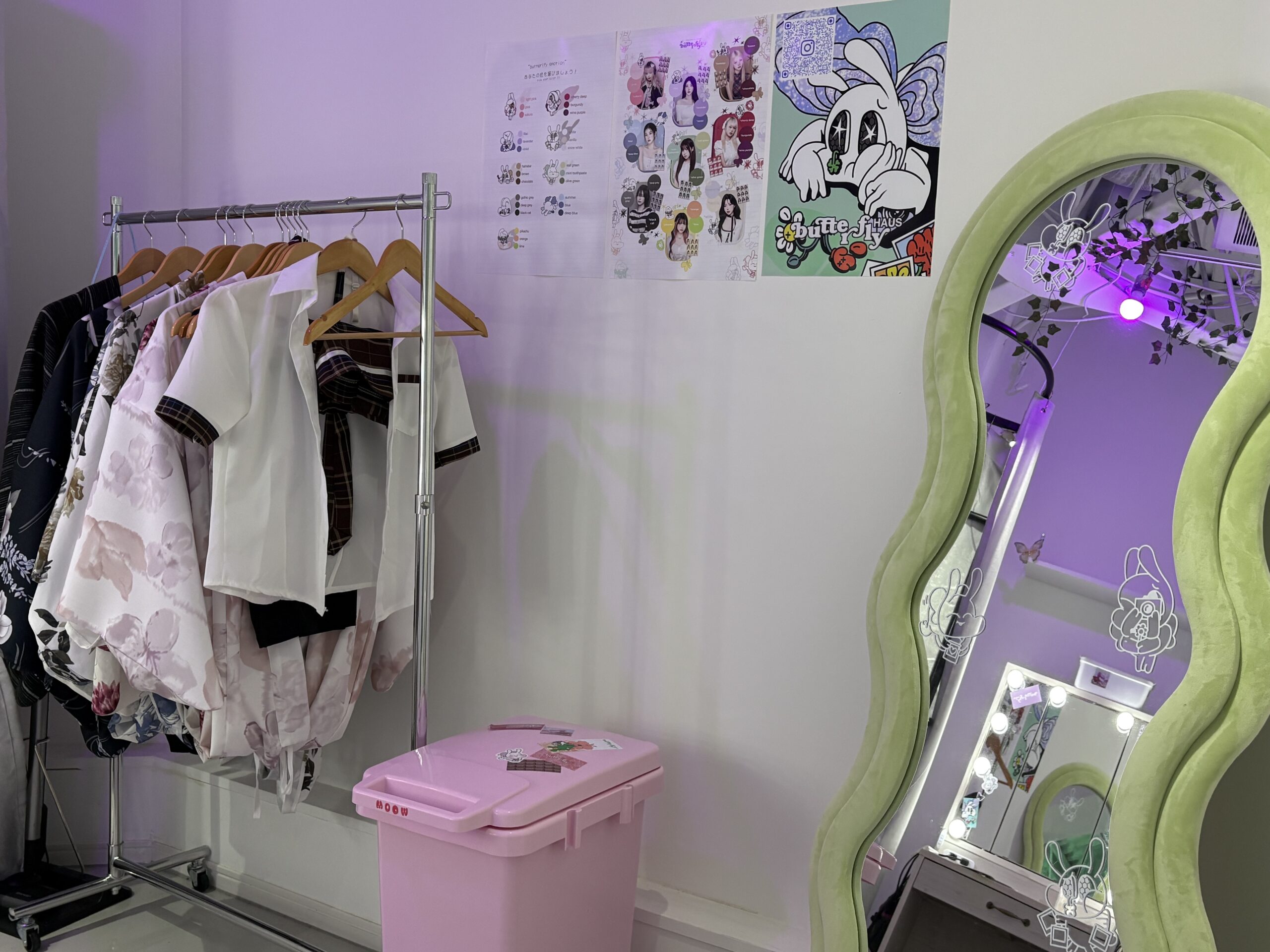 韓国の制服が掛けられた衣装ラックもあり、今回は"ワンチャンコース"ですが他にも様々な撮影に対応されているとのこと。