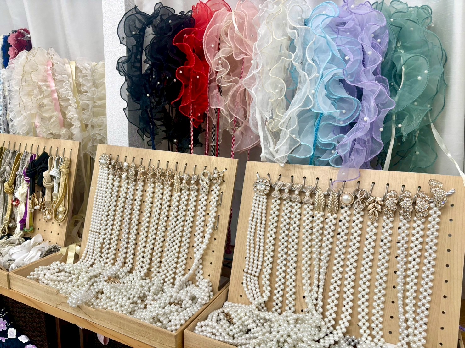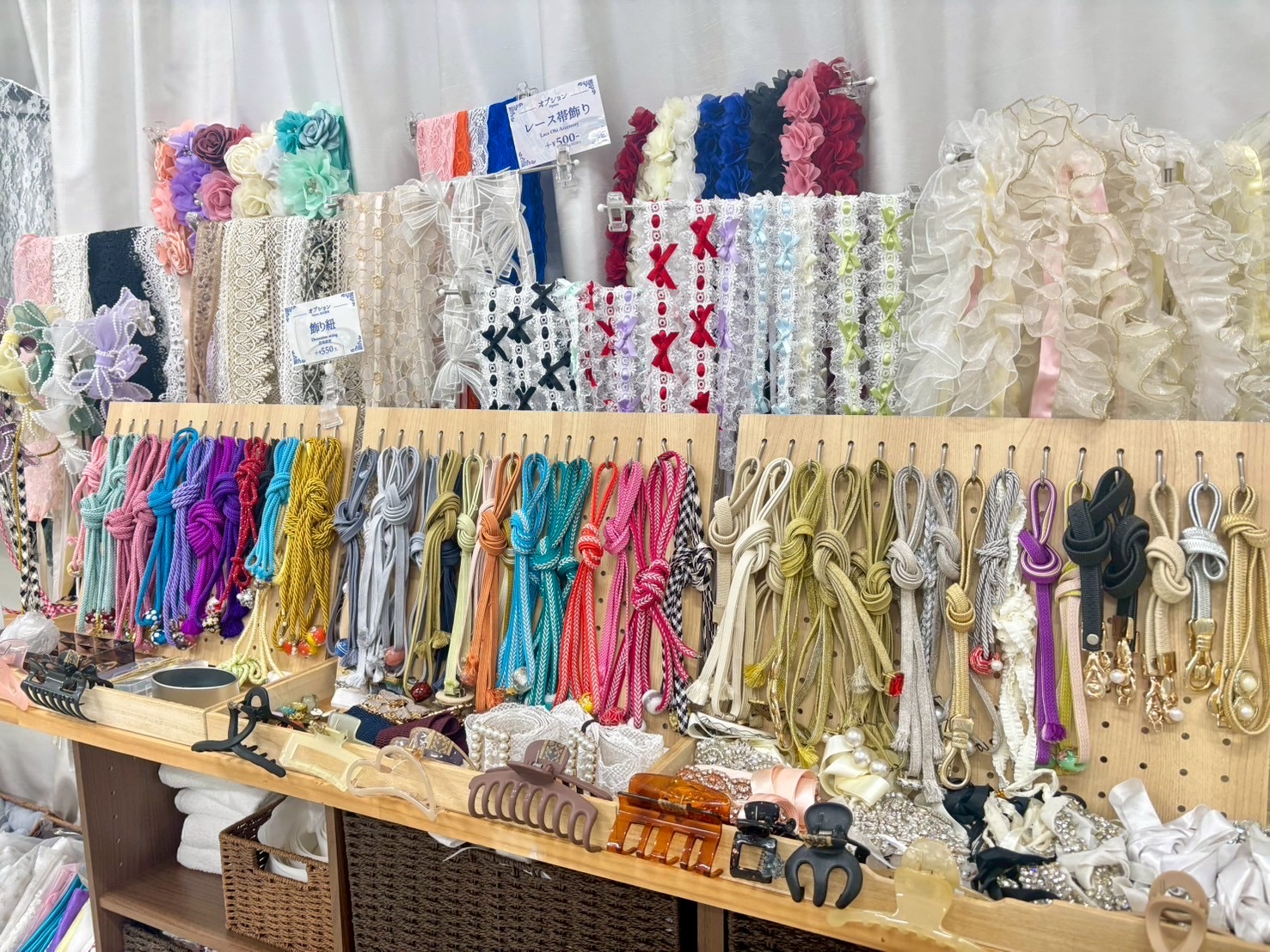 可愛いレース帯飾りや飾り紐、ヘアアクセサリーも揃っています♪