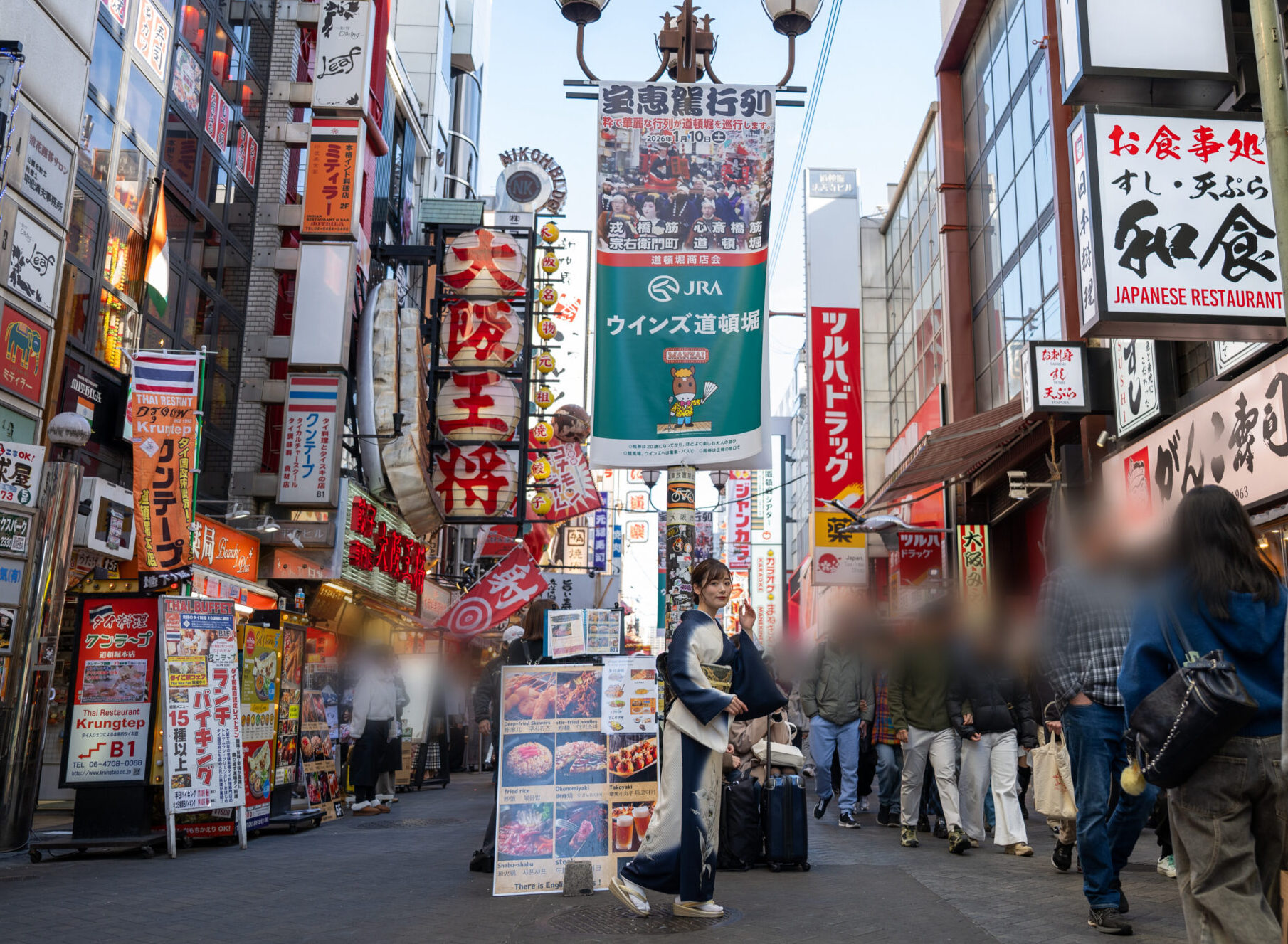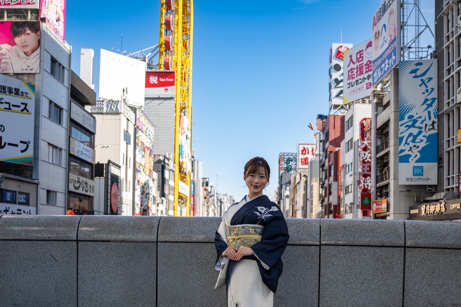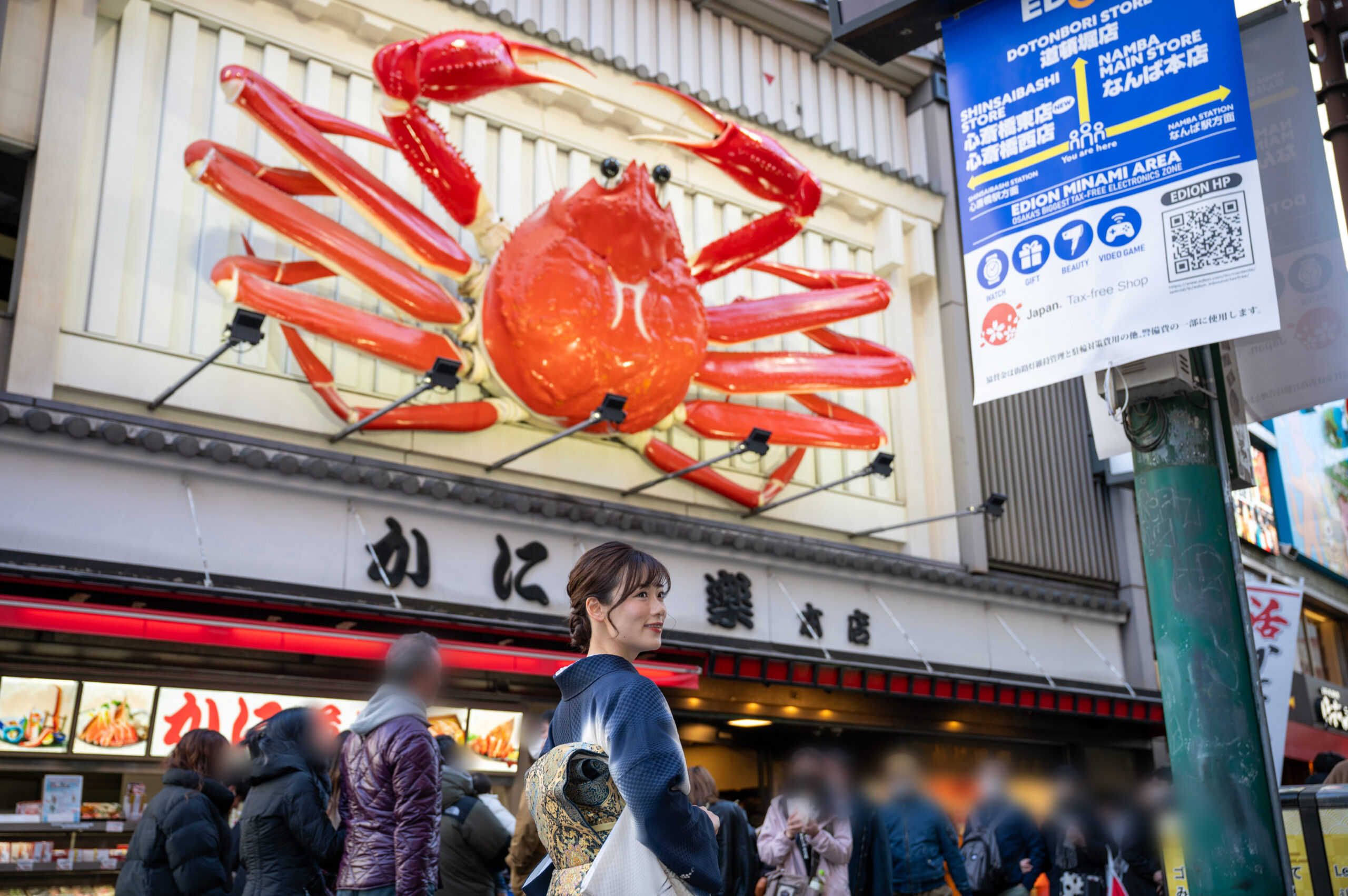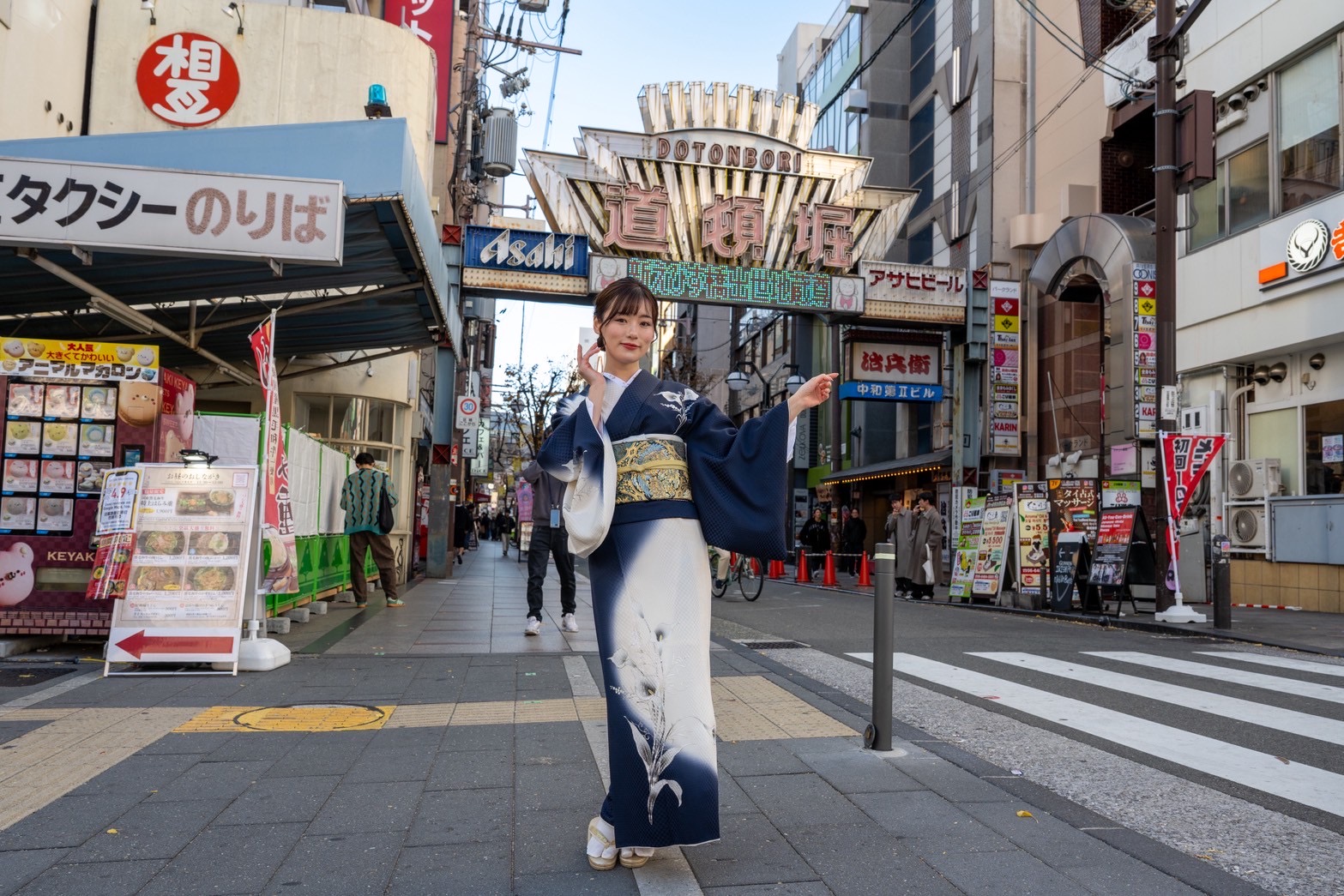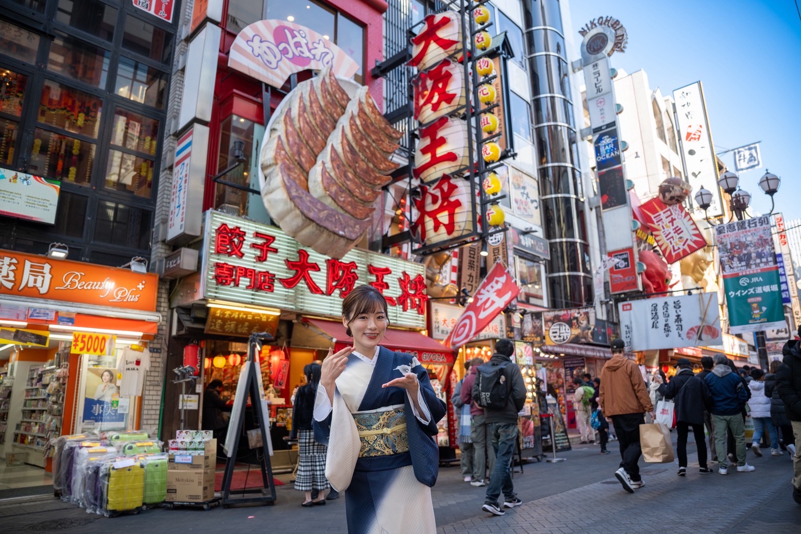 「きものレンタルwargo 大阪心斎橋店」では、大阪の人気観光地・道頓堀エリアを着物姿で散策しながら、プロカメラマンが美しく撮影する “大阪・道頓堀×着物撮影” サービスを提供しています。