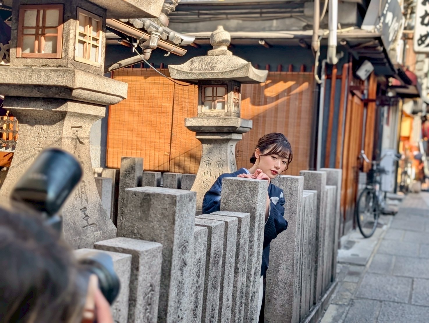 石畳が続く風情ある小路で日本らしい趣ある風景を着物姿で美しく撮影できます。