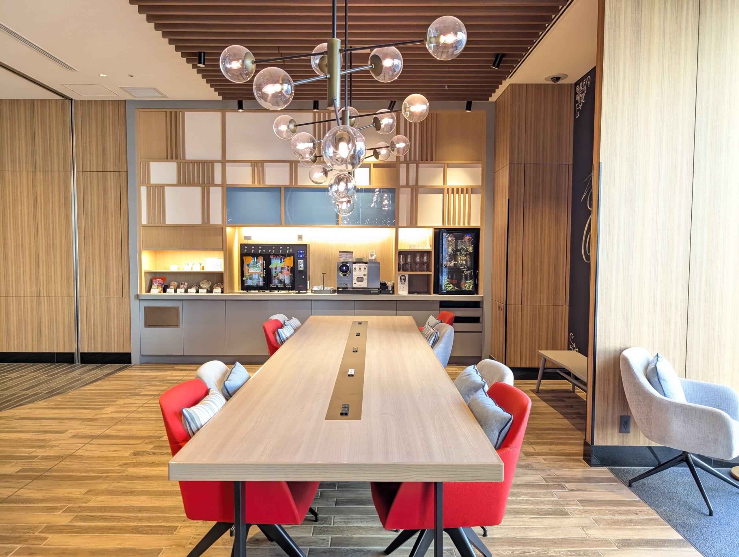 広々としていて、全席にコンセントも付いているので作業がしやすい大きなテーブルも完備されています!