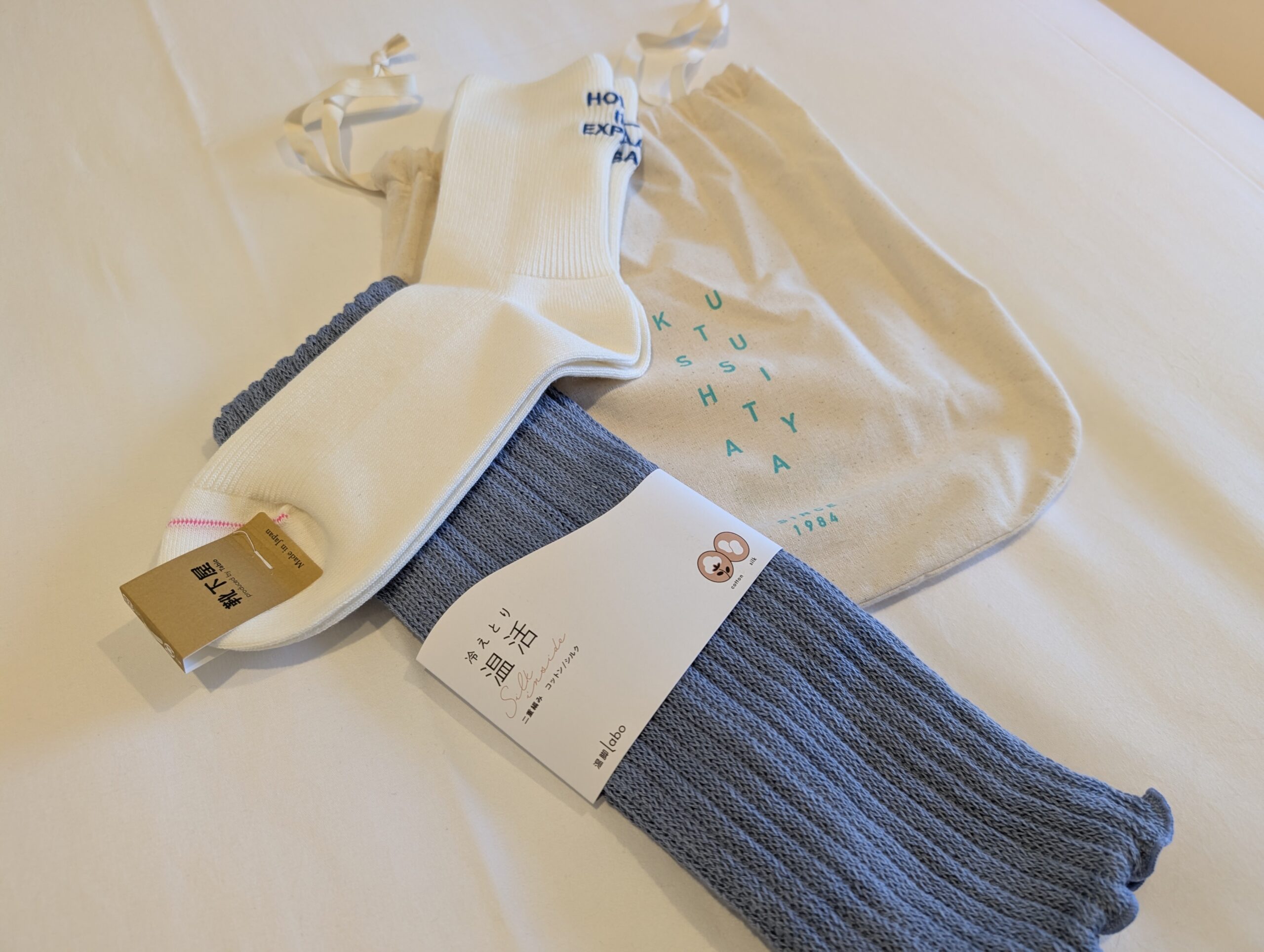 もう片方には、ホテル名の刺繍が入った、足のラインを綺麗に見せるリブソックス。