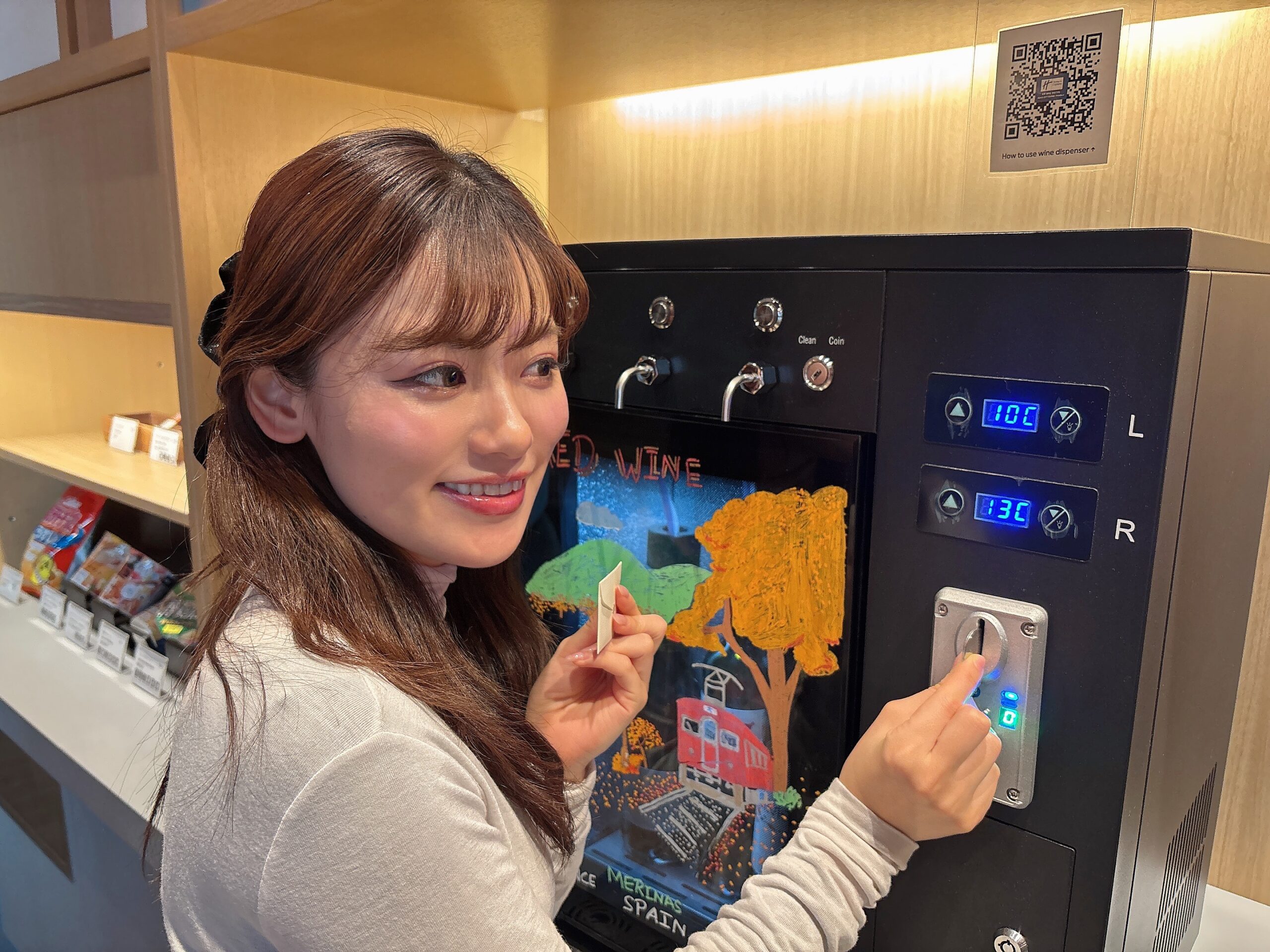 フロントでコイン購入後、お好きなワインを自分で注げるシステムになっています!