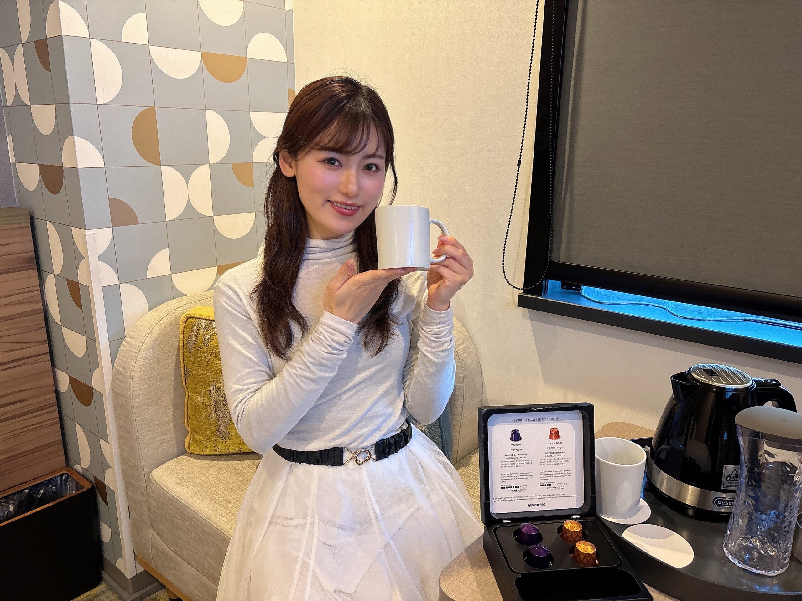 プレミアムルームのみ設置のネスプレッソで淹れたコーヒーを飲みながら、お部屋でゆっくりする時間もいいですね