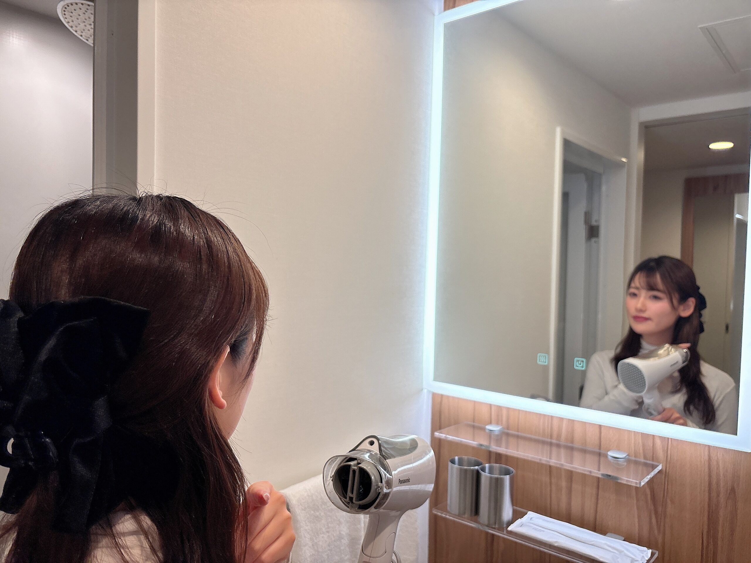 大きな女優ミラーで朝のメイクもしやすく女性にとってもありがたいですね!