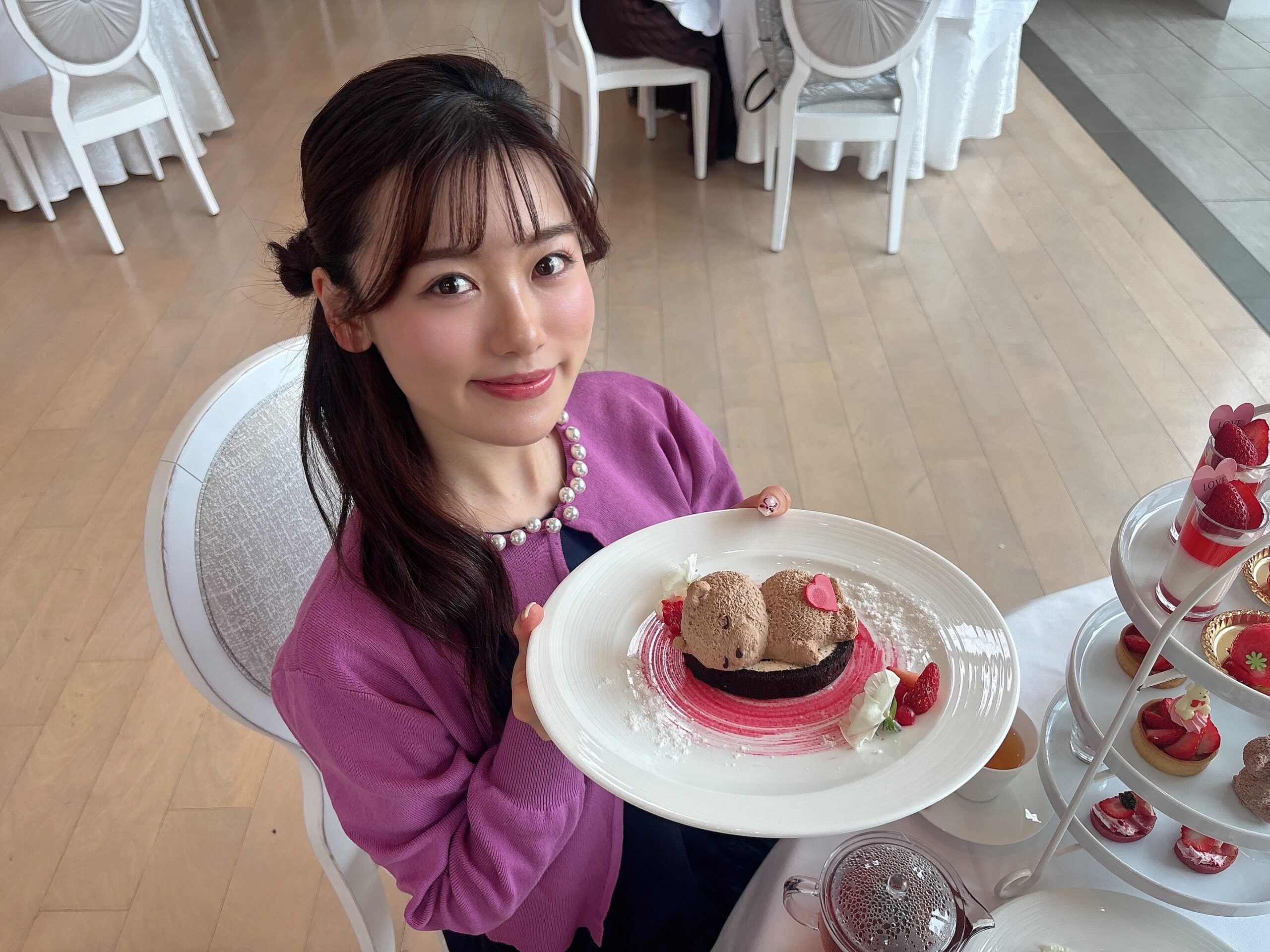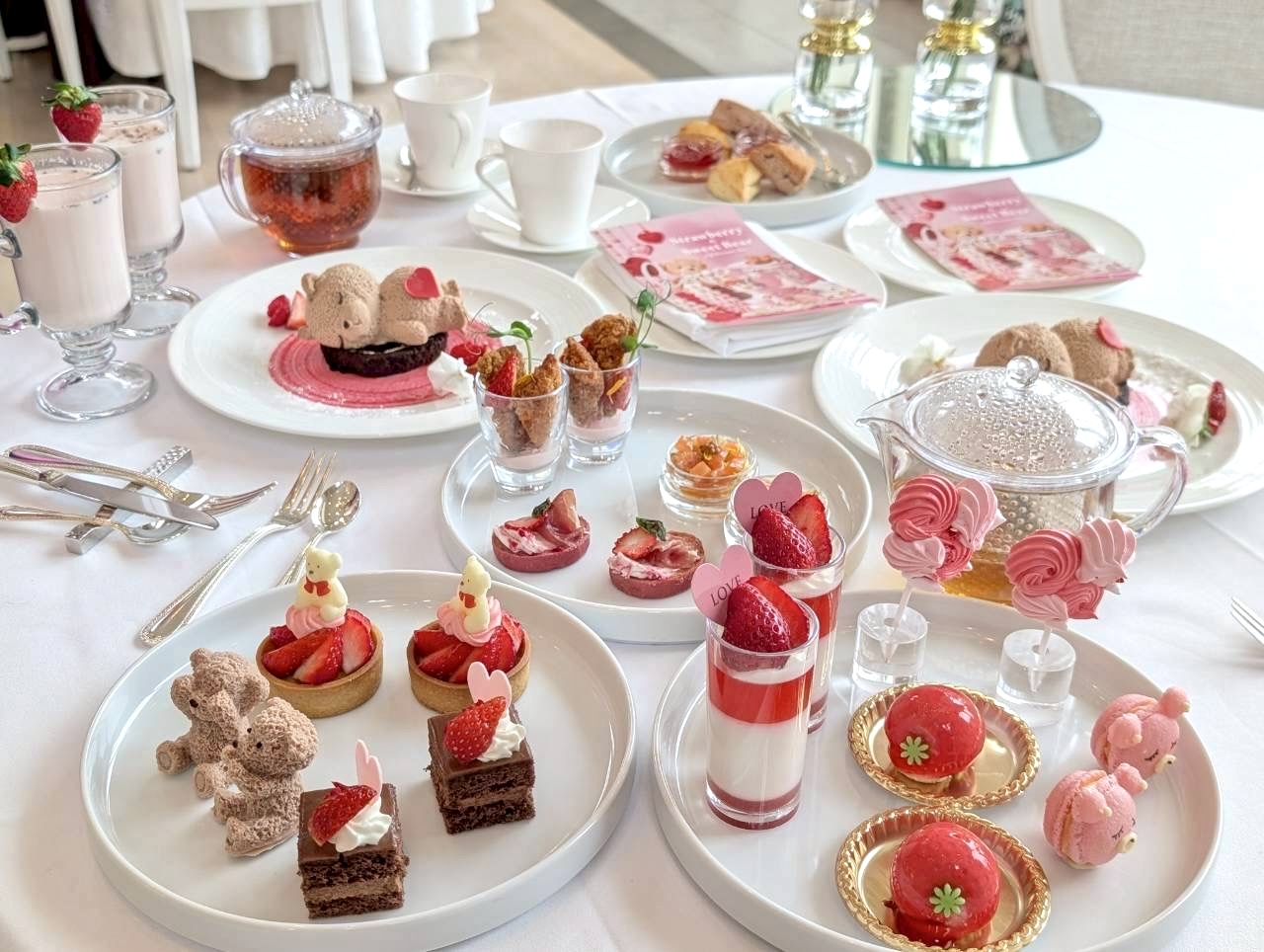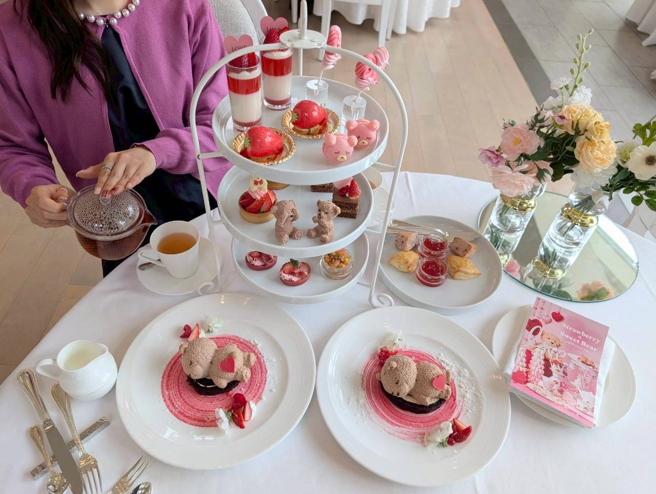 今回のアフタヌーンティーは、旬のいちごをたっぷり使用した「くまのスイーツ」が大集合!