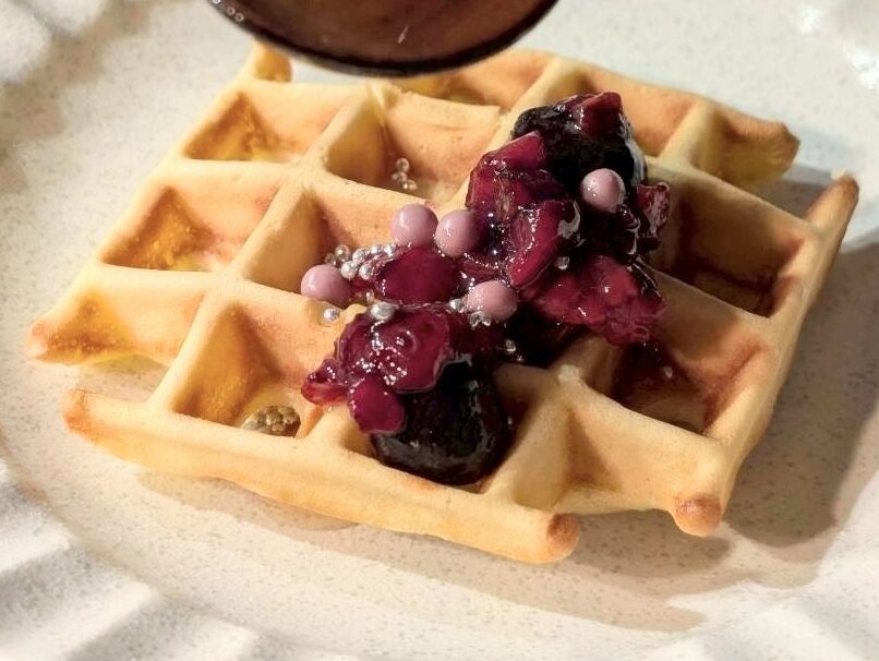 今月のデザートとして、出来たてのワッフルを食べることができます。