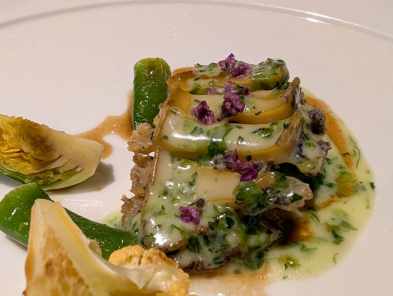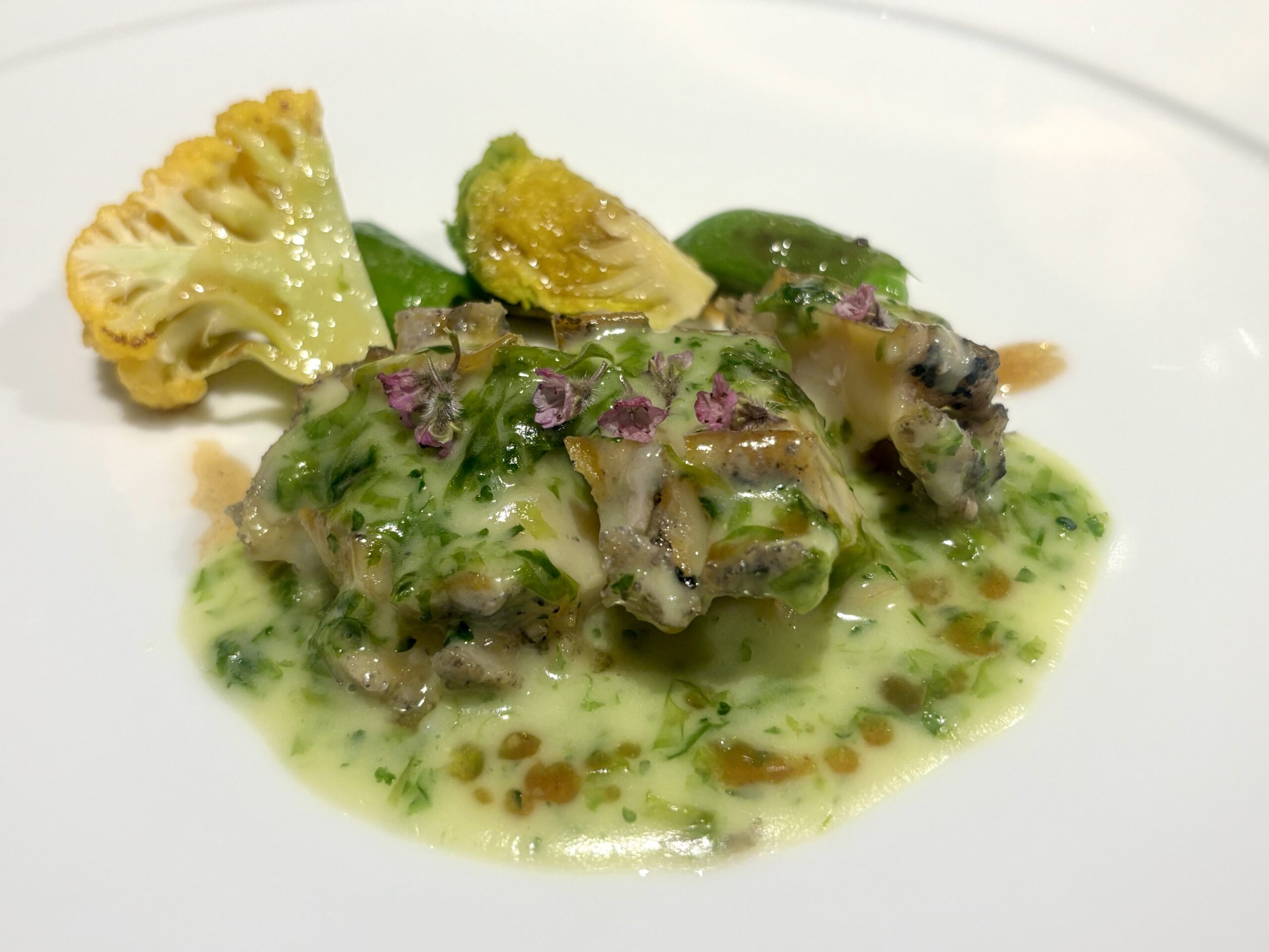 活け鮑のロースト 海藻のブールフォンデュとグラス・ド・ヴィヤンド