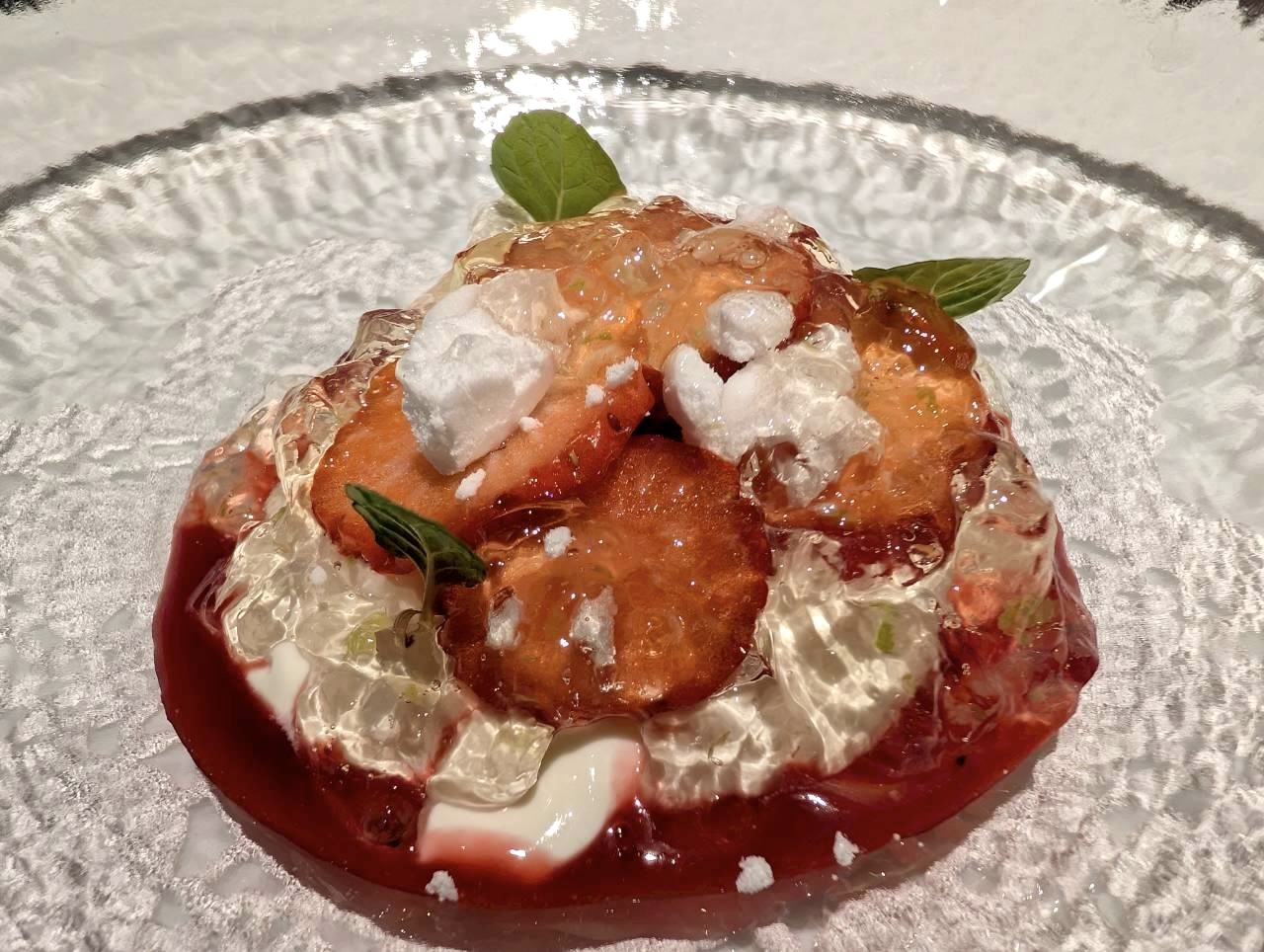 食後のデザートには、お口直しにもなるハーブのすっきりさを加えられた程良い苺の甘いデザートでお腹が満たされ大満足です♡