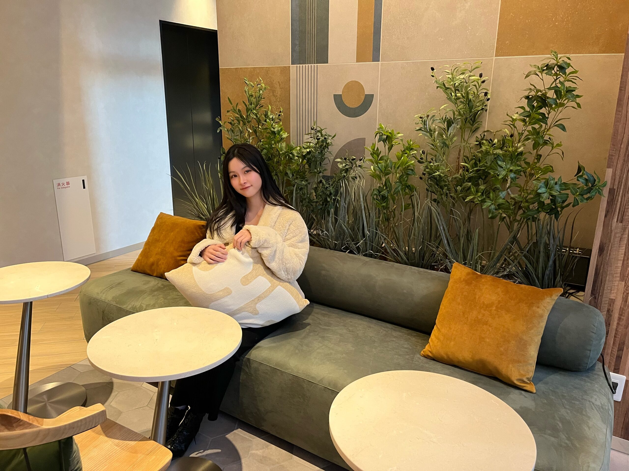 1階のラウンジには、大きなガラス窓からの優しい自然光が差し込みます。