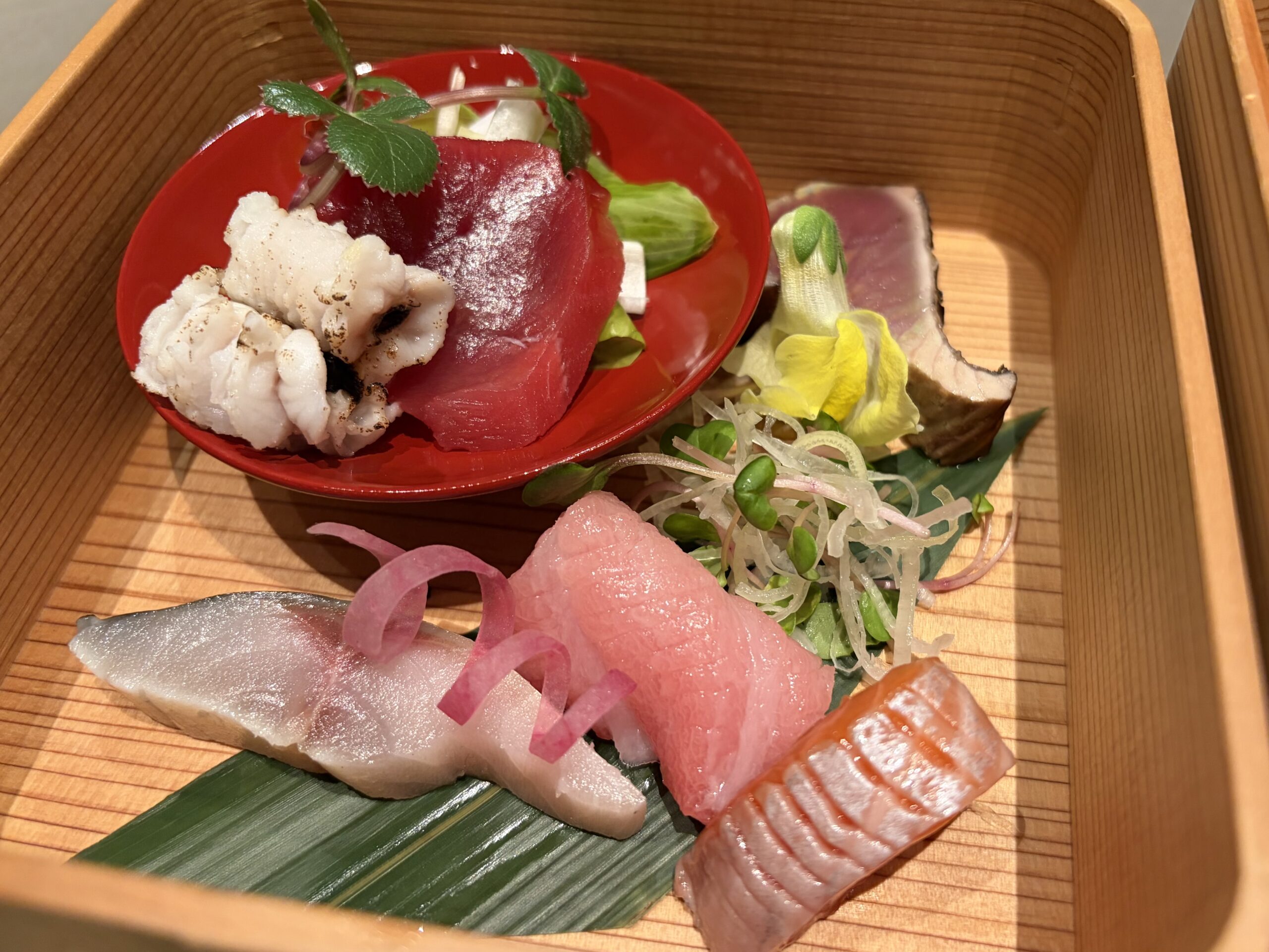 それぞれの魚の特徴を楽しみながらいただけるお刺身盛り合わせは、感動の美味しさでした。