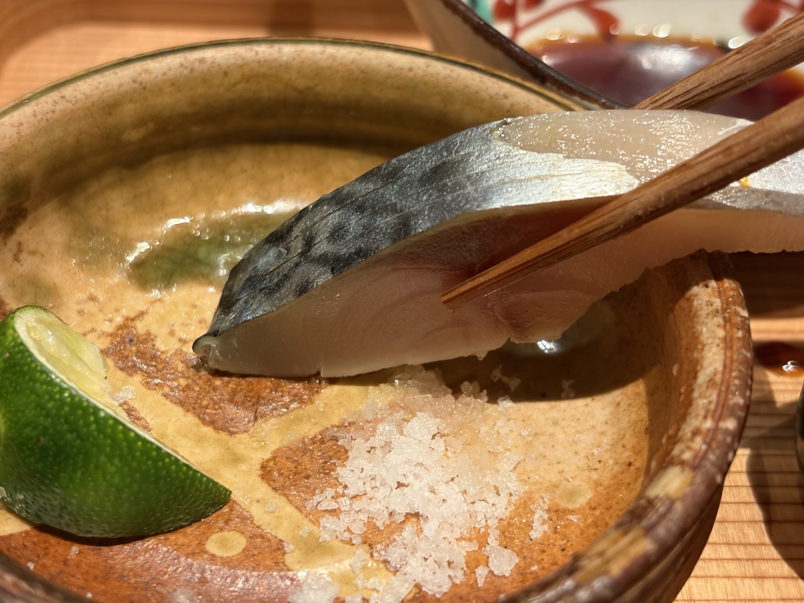 マサバには、マルゴンのお塩を付けていただくことに。