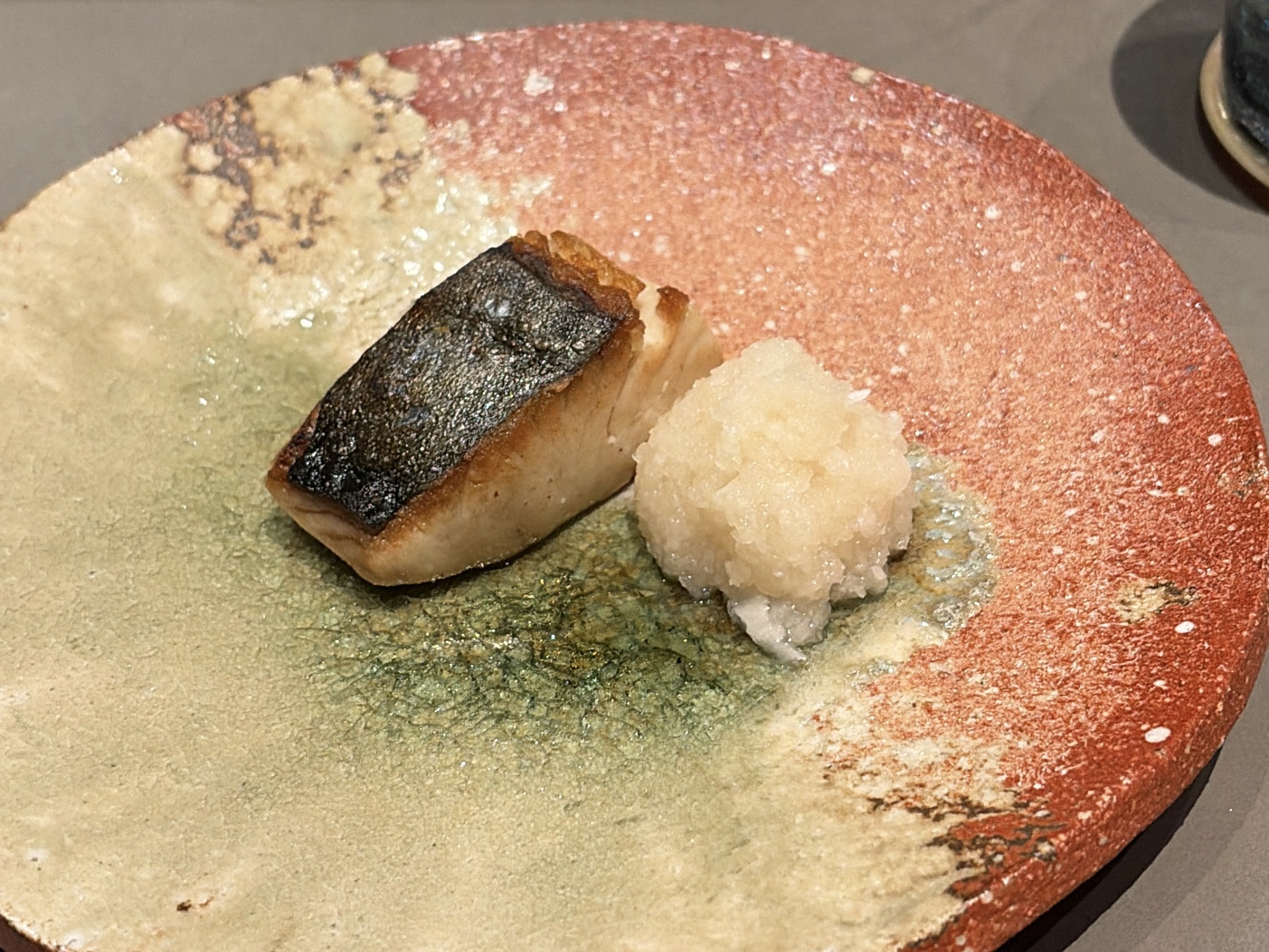 さわらの塩焼き 鮎魚醤とホワイトバルサミコの鬼おろし