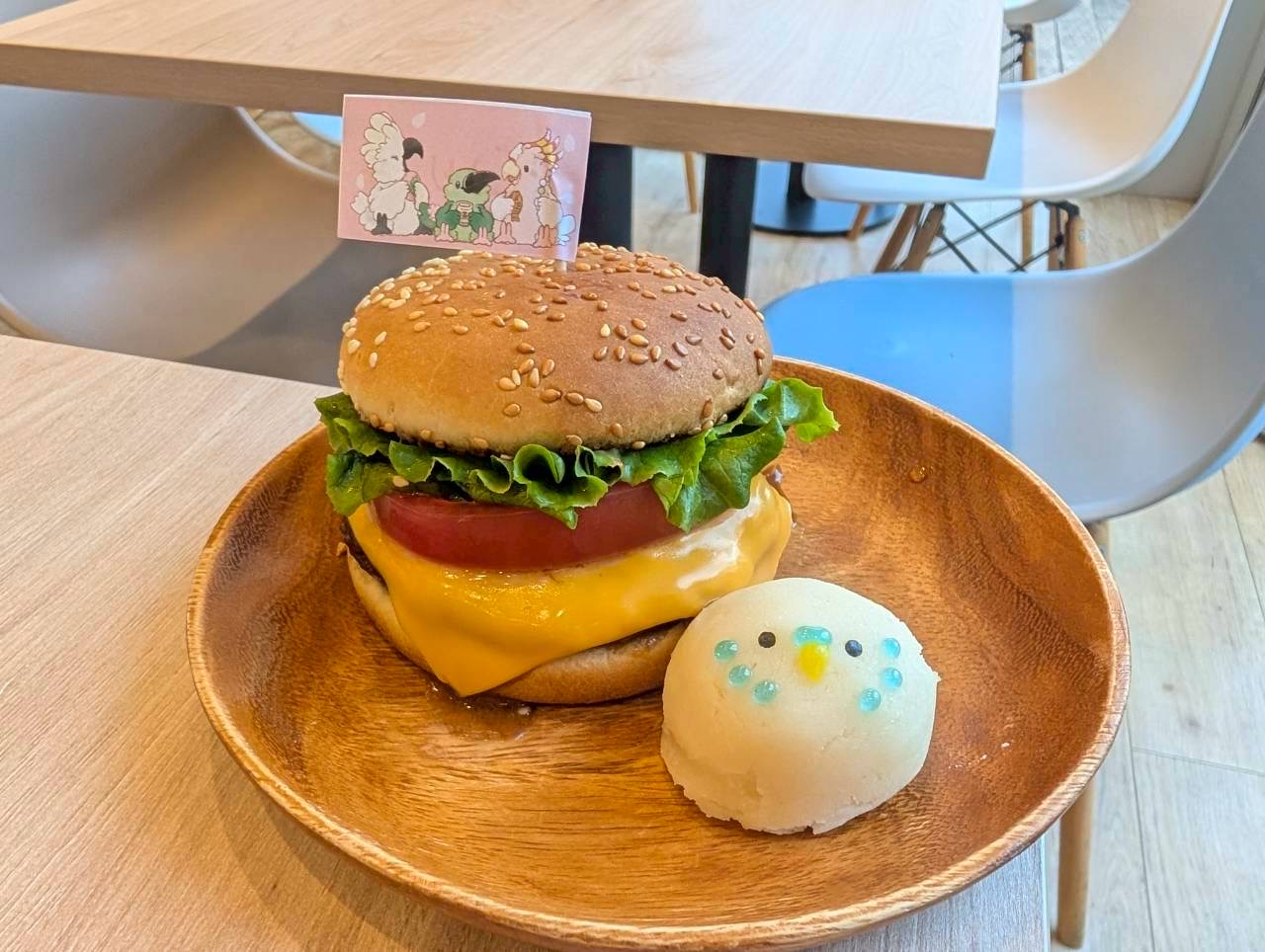ほくほくとした食感の付け合わせのポテトには、なんとインコの顔が描かれています!