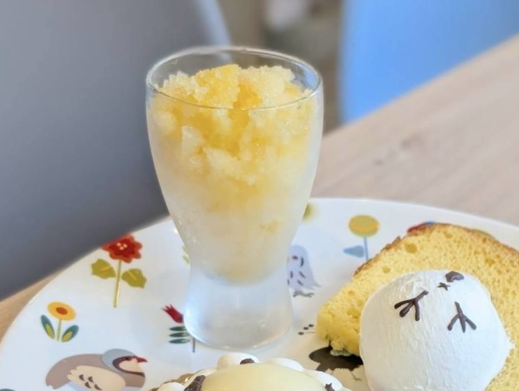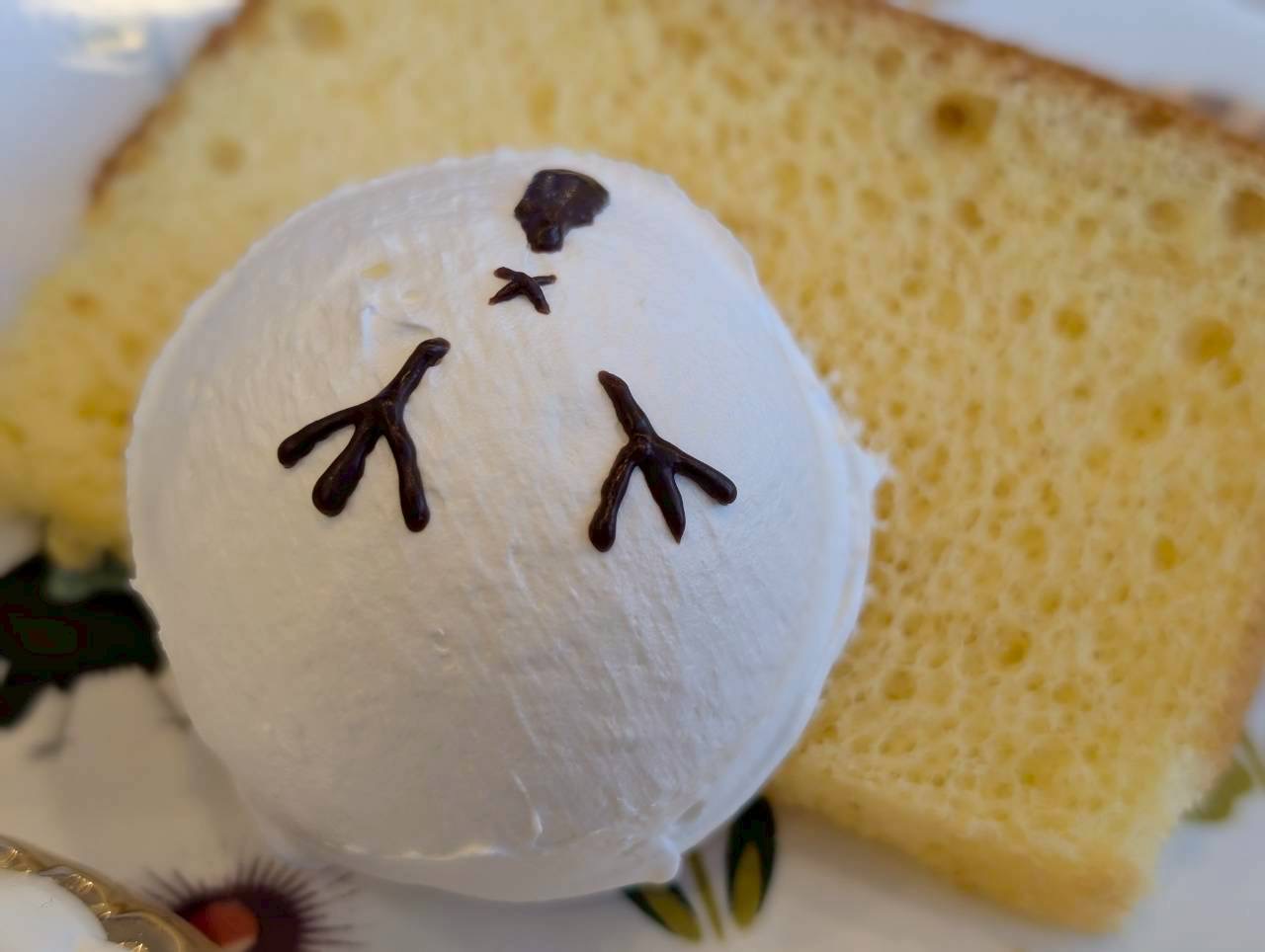 その上には、小鳥のおしりが描かれたホイップクリームがちょこんとのっています。