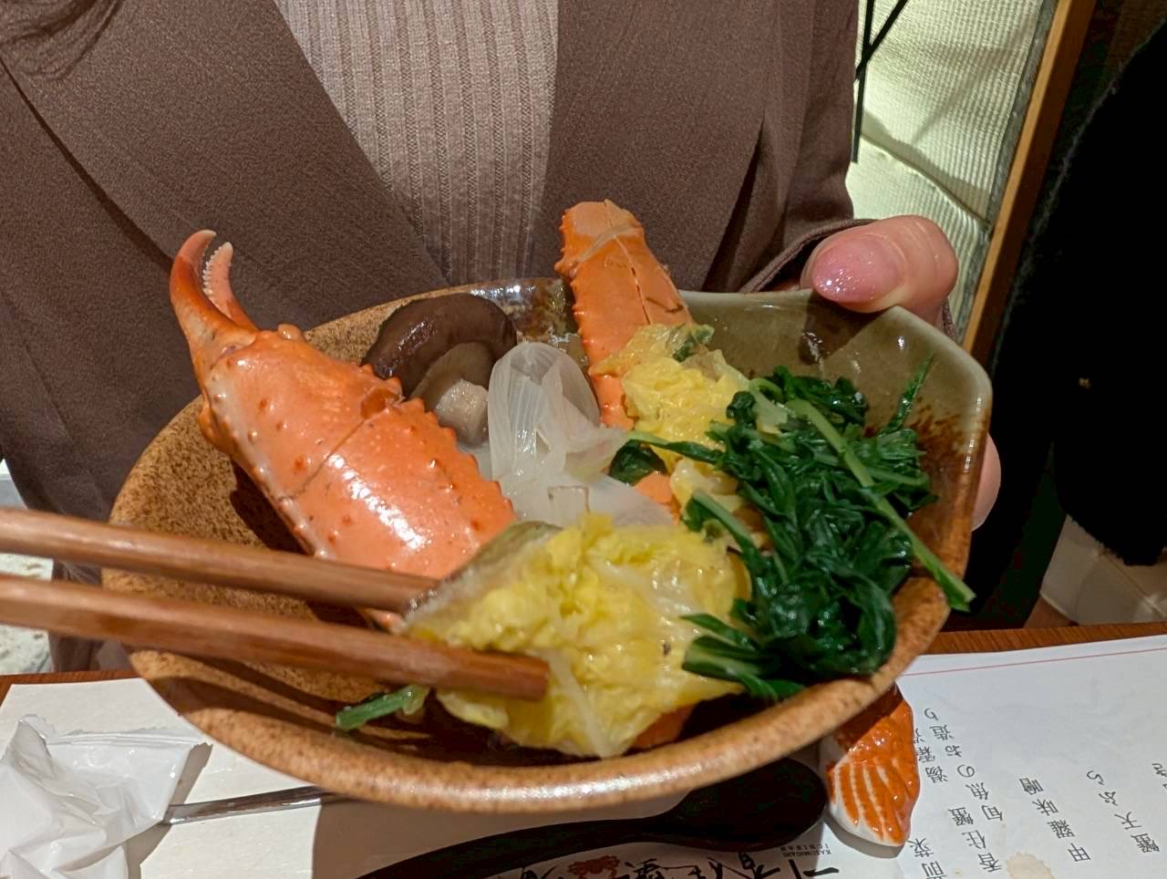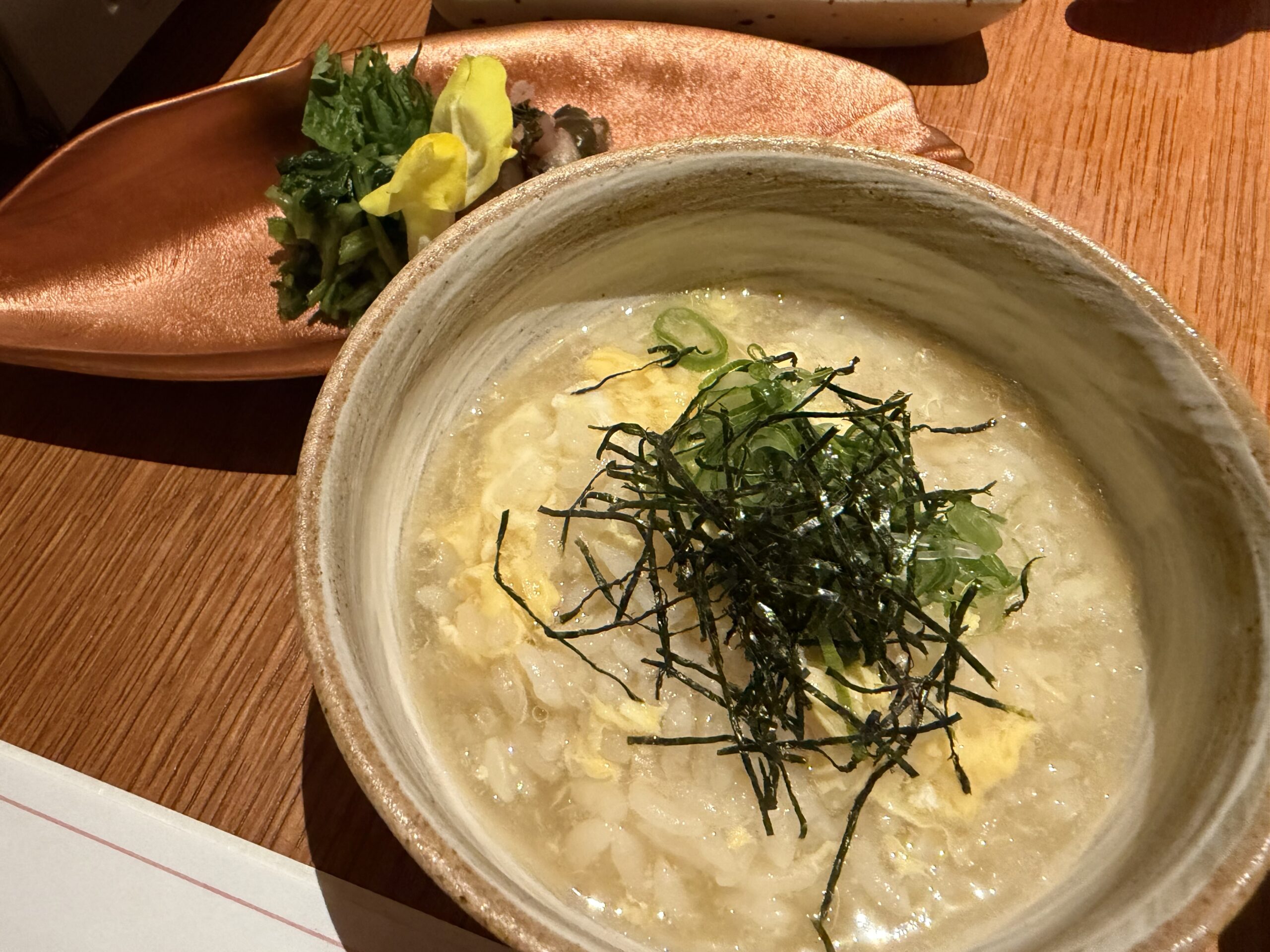 締めには、蟹の旨味がよくでた雑炊をスタッフの方が仕上げて提供してくださります。